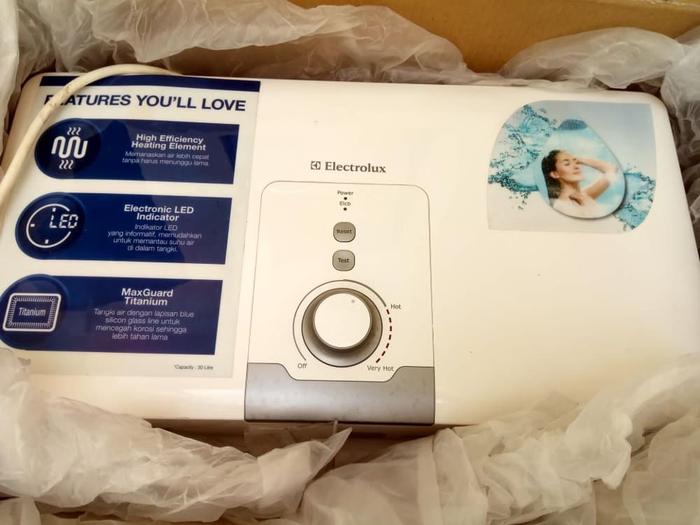 Electrolux tipe EWS15AEX-DW Spesifikasi : Kapasitas 15 liter Konsumsi listrik 300-500watt Voltase 220 V Frekuensi 50Hz Tekanan dalam tangki 0.8/8 Min-Max Temperatur (30C-75C)5C Dimensi (PxLxT)mm 485X311X347 Berat Bersih/isi penuh 10,8kg/25,8kg Instalasi Horizontal/digantung didinding Selamat Berbelanja
