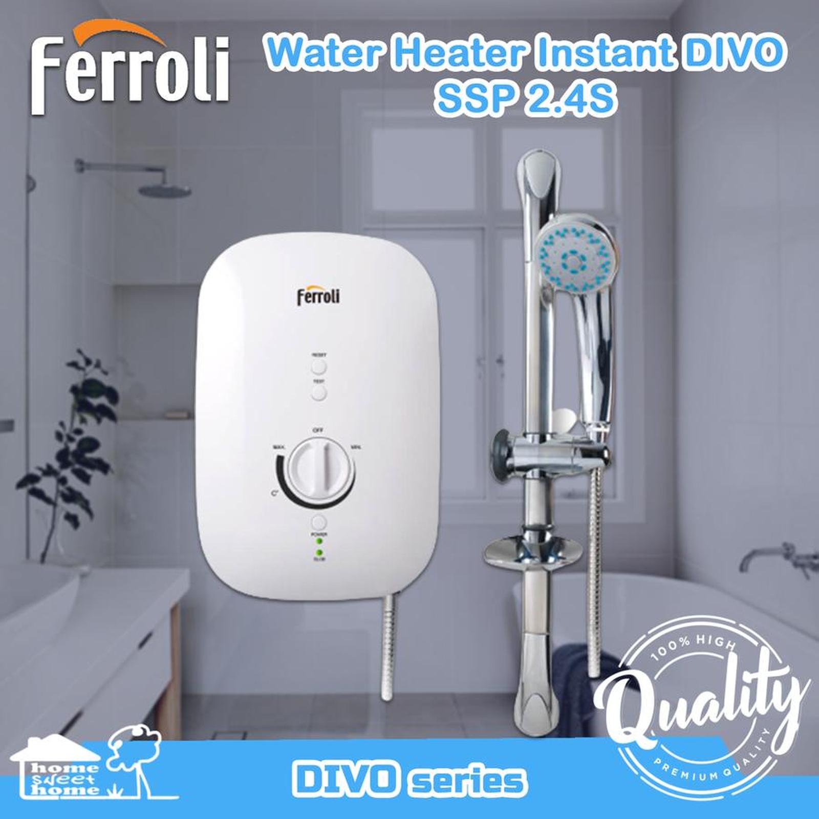 & Free ShippingFerroli Water Heater Instant DIVO SSP 2.4S ++ booster pump internal seri terbaru dari pemanas air Teknologi Italia. Produk terbaru dengan desain yang lebih slim dProduk ini sangat aman karena dilengkapi teknologi canggih untuk keamanan pemakai..Produk ini bisa berfungsi mulai daya listrik 1000 watt sampai maksimal makin panas 3300 Watt.