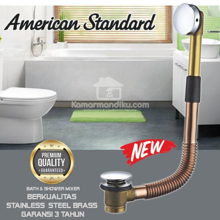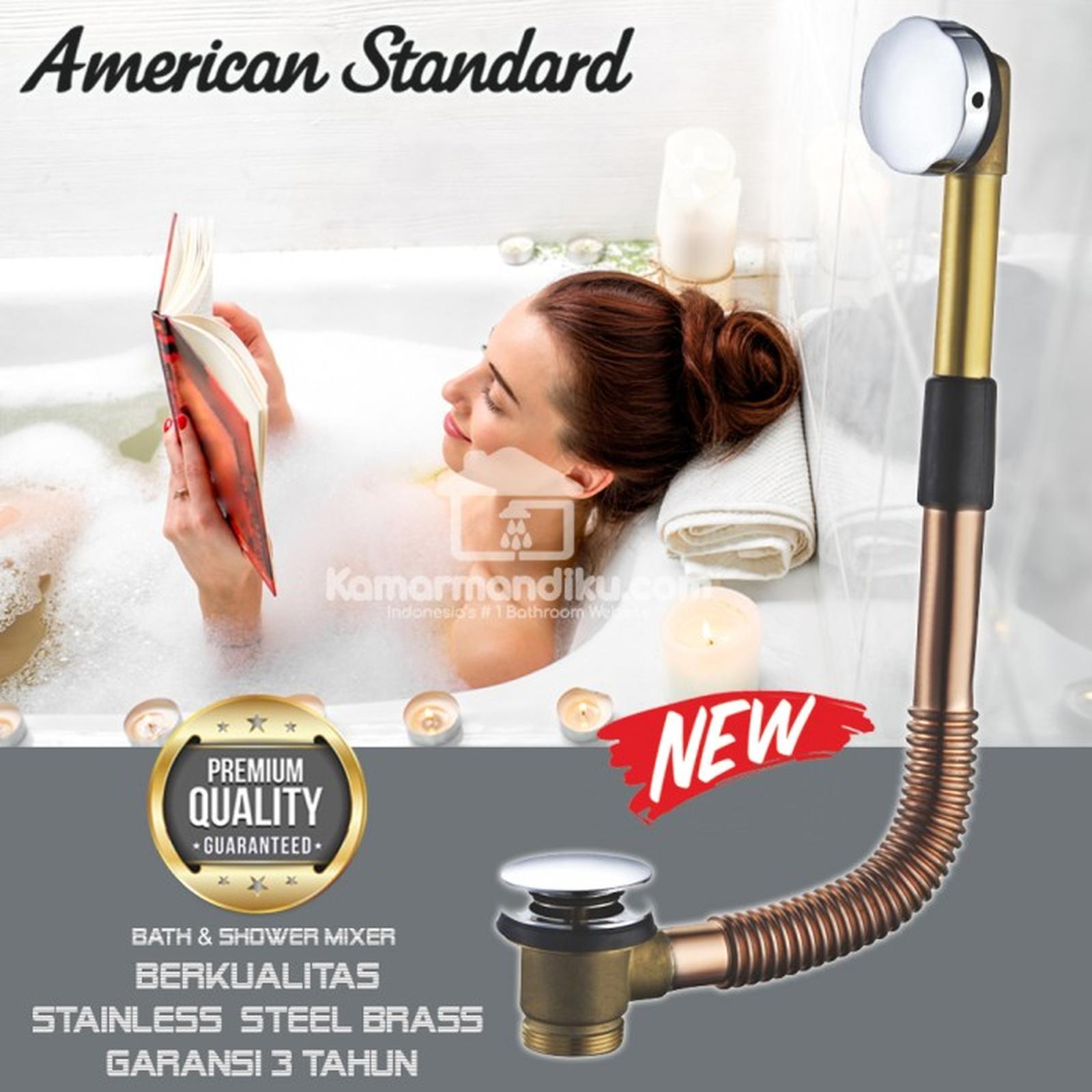 Afur bathtub Premium dari American Standard, Produk Asli berkualitas, tidak mudah bocor / macet. Hari-hati dengan produk Tiruan/ Palsu/ Abal-abal, pastikan beli yang asli hanya di kamarmandiku. Afur bathtub ini cocok untuk segala jenis bathtub merk apapun seperti Toto, Roca, Grohe, Kohler, handgrohe, halmar dll Deskripsi produk: * brass body * stainless steel outer corrugated pipe with copper plated * stainless steel short pipe * stainless steel decorative overflow cover with hole * zinc small cap * 75cm from center to center * with 5 cm stainless steel screw
