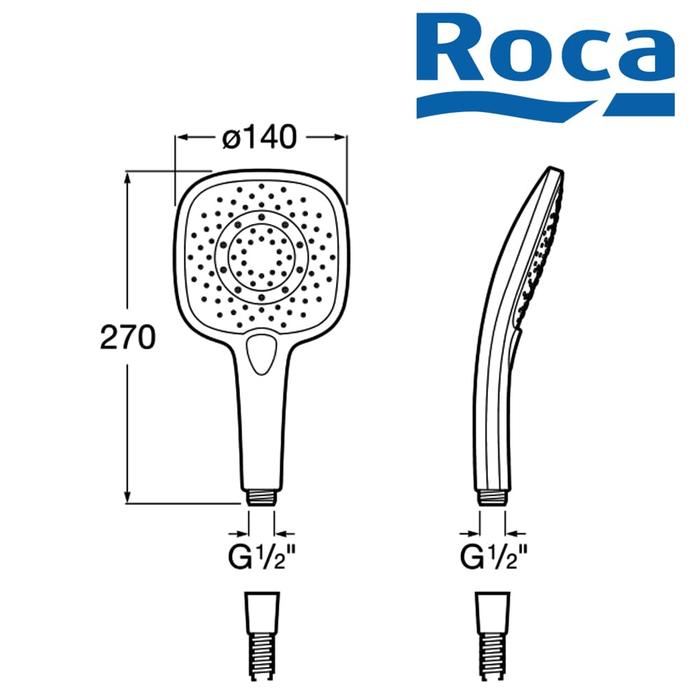 Roca Handshowers – Plenum Square Diameter (mm): 140 Selesai: Chrome, Putih Jumlah fungsi: 3