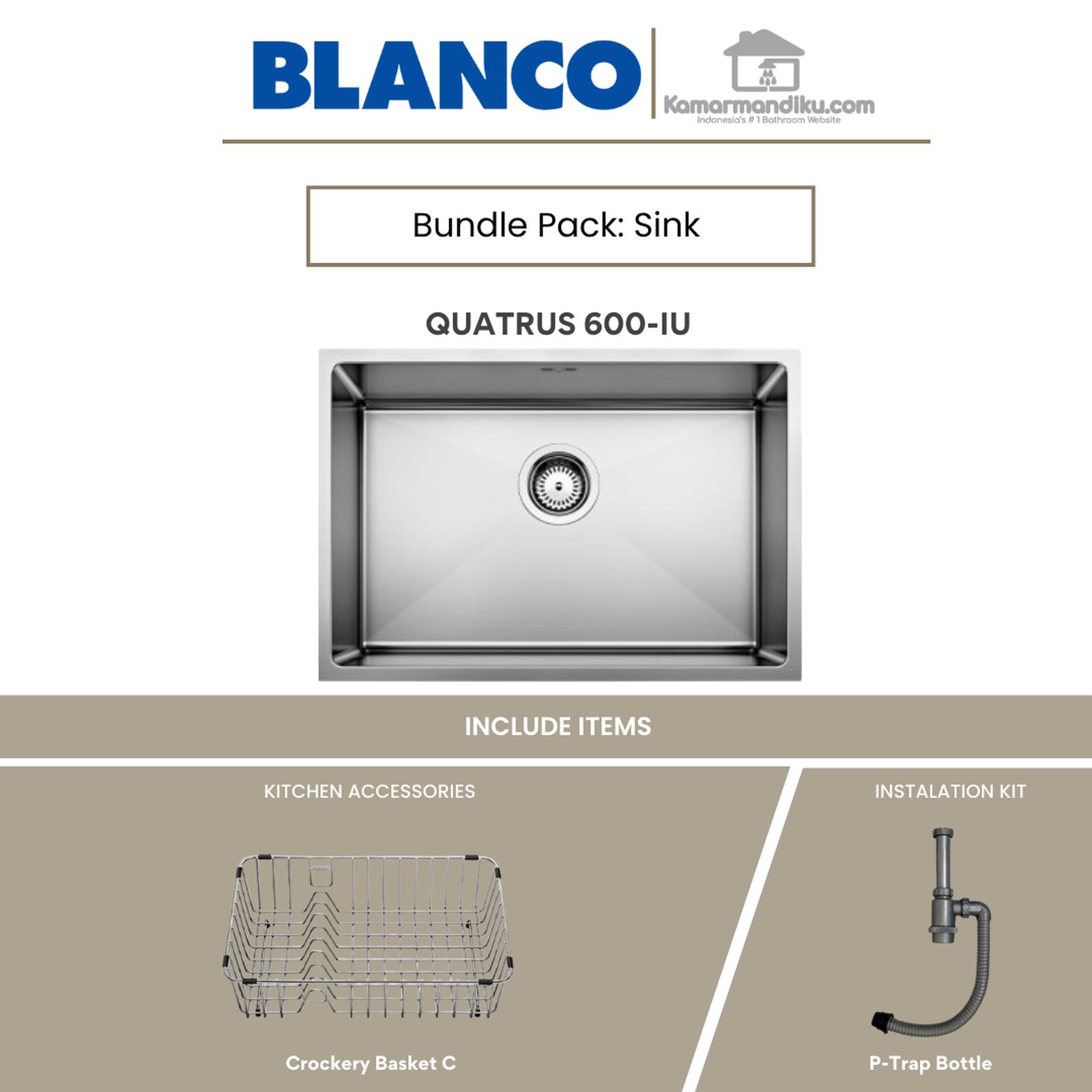 & Free ShippingBLANCO QUATRUS 600-IU – Desain sangat modern dan minimalis – Ukuran Sink: 640 x 440 mm – Kedalaman lubang : 200 mm – Finishing: Stainless Steel Brushed