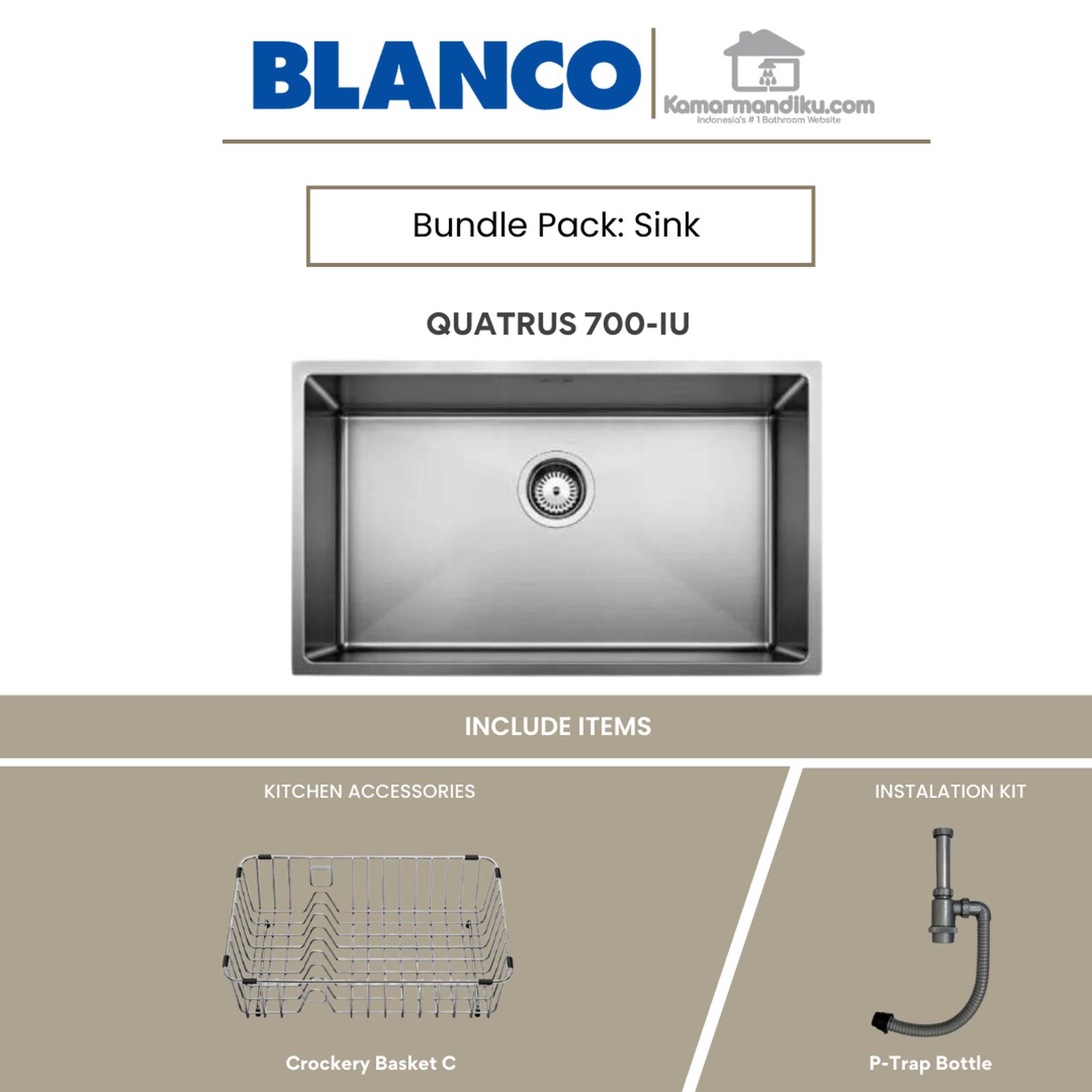 & Free ShippingBLANCO QUATRUS 700-IU – Desain sangat modern dan minimalis – Ukuran Sink: 740 x 440 mm – Kedalaman lubang : 200 mm – Finishing: Stainless Steel Brushed