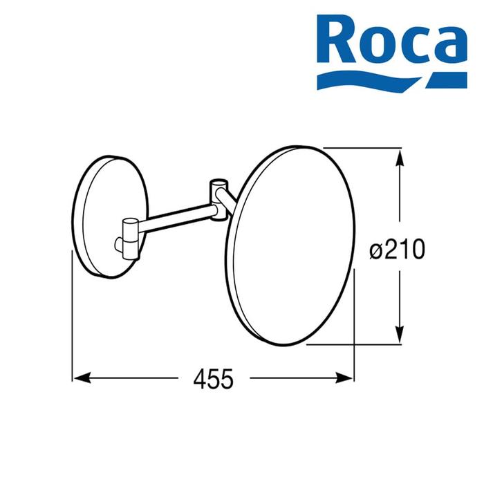 Roca Hotel’s 2.0 – Wall-hung Magnifying Mirror Without Light Ukuran: Panjang: 455 mm. Lebar: 210 mm. Tinggi: 210 mm. Jenis instalasi: Gantung di Dinding Bentuk: Bulat