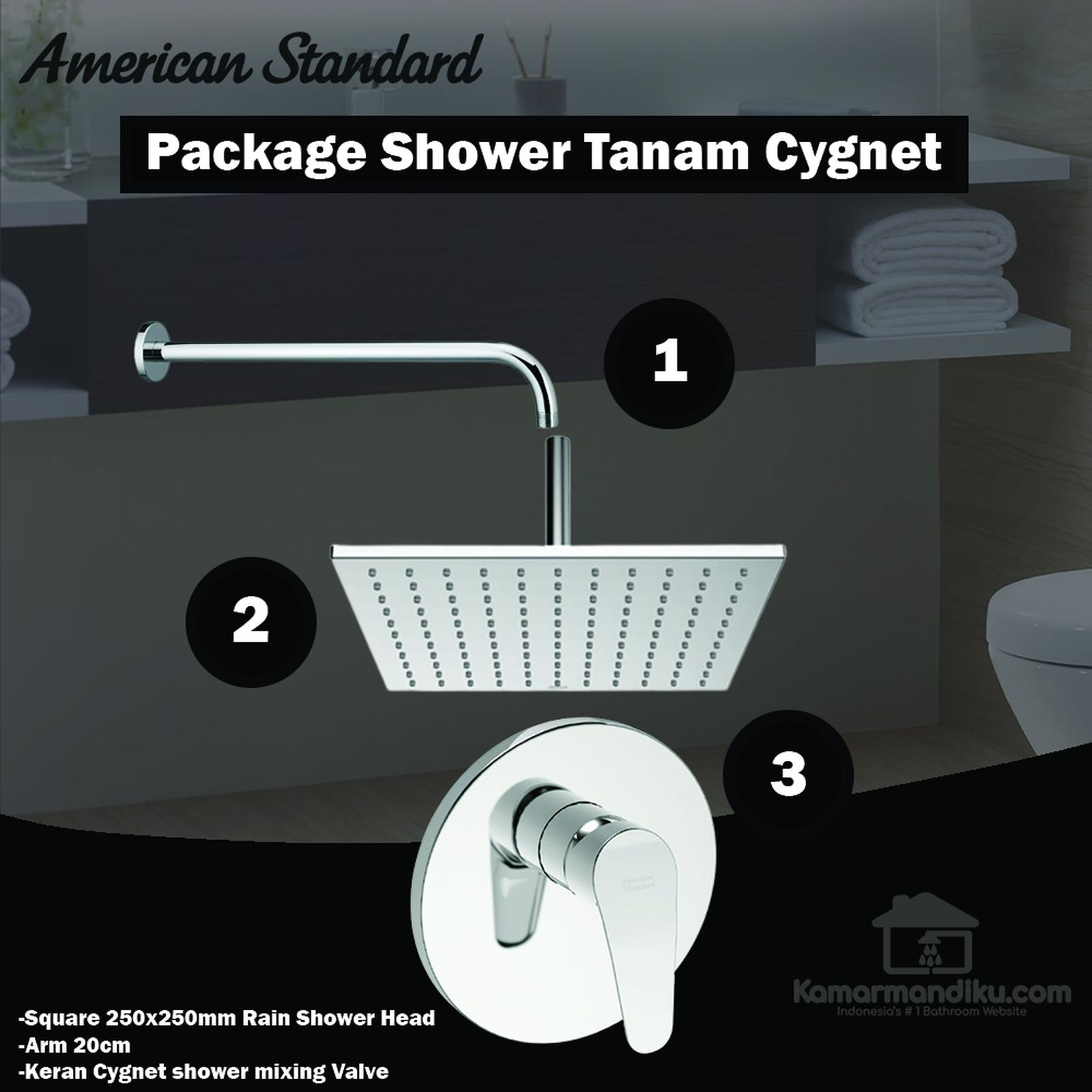 & Free ShippingPaket American Standard shower head Square 25cm Kran cygnet +arm 20cm Yang di dapat : – Shower head square 25x25cm – ARM 20CM, – Kran cygnet concealed shower mixing valve