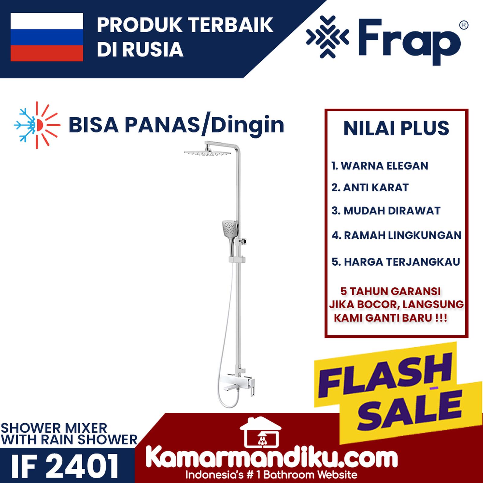 & Free ShippingProduk Terbaik di Rusia Keran Shower Mixer Panas Dingin dengan tiang rain shower. Frap Kran shower mixer panas dingin dan tiang rain shower IF 2401 hadir dengan design elegan untuk kamar mandi anda, produk ini merupakan produk unggulan dari Rusia yang menambah pengalaman mandi di rumah anda