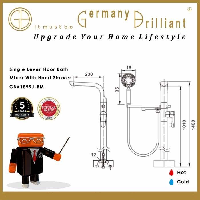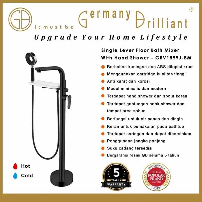 Germany Brilliant Kran Bathtub with Hand Shower GBV1899J-BM KODE: GBV1899J-BM – Berbahan kuningan dan ABS – Warna hitam doff – Menggunakan cartridge kualitas tinggi – Anti karat amp; korosi – Terdapat hand shower dan spout keran – Terdapat gantungan hook shower dan tempat area sabun – Berfungsi untuk air panas amp; dingin – Keran untuk pemakaian pada bathtub – Terdapat saringan dan dapat dibersihkan – Penggunaan jangka panjang – Suku cadang tersedia – Bergaransi resmi GB selama 5 Tahun