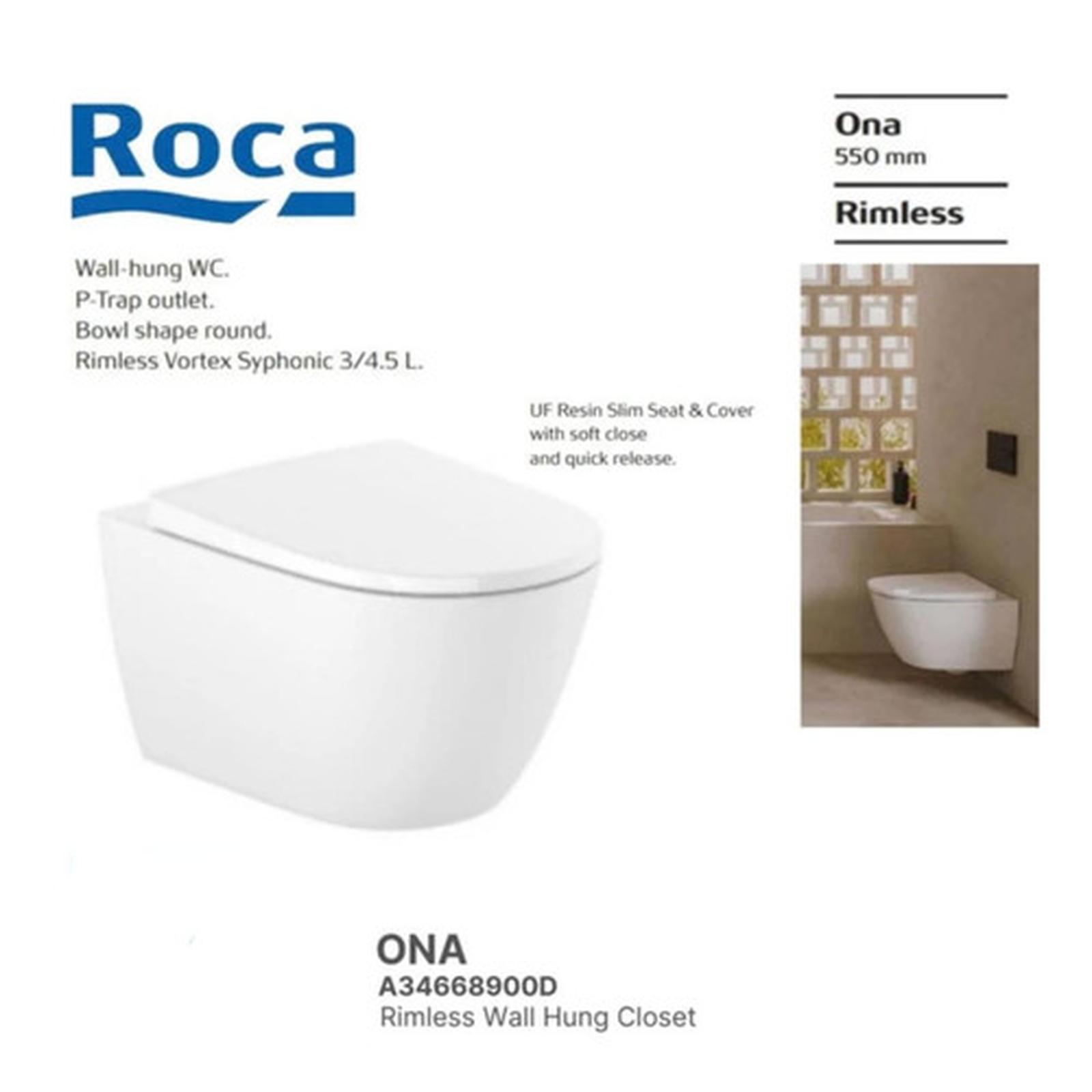 Toilet Roca Rimless Wall Hung Model Ona A34668900D