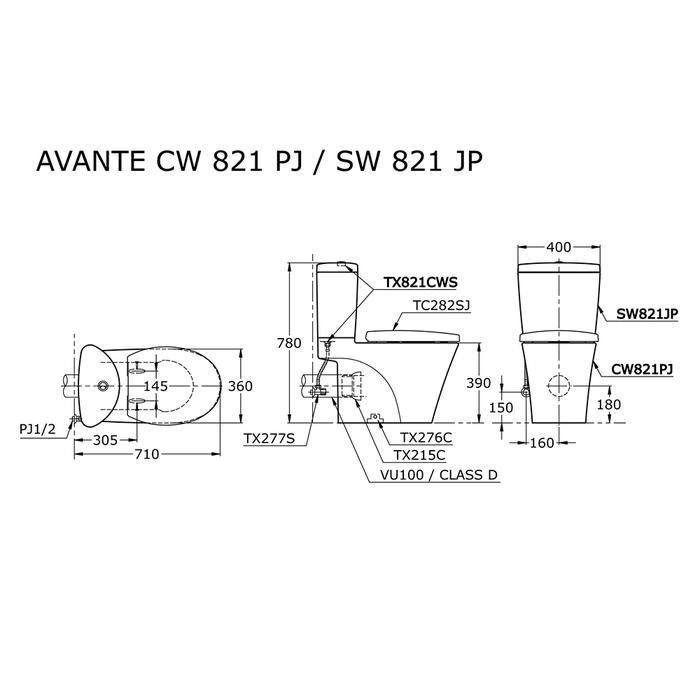& Free ShippingTOTO Closet Duduk CW821PJ / SW821JP 6 / 3 L Tornado-II Dual Flush Solid Duroplast Seat Cover Bowl Shape: European Std. SPECIFICATIONS Rough-in: 180 mm Bowl Shape: European