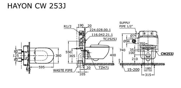 Toilet TOTO Wall Hung Model CW253J