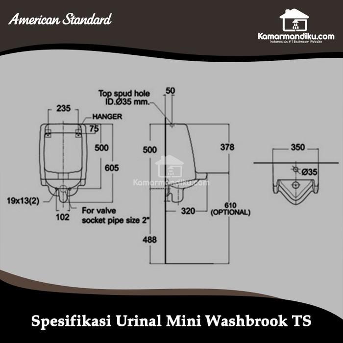 Urinal mini Washbrook American Standard Komplit set American Standard -Push kran + pipa -inlet -Moeslim -strainer -breket