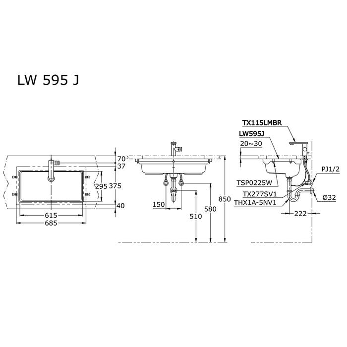 & Free ShippingTOTO Wastafel LW595J Specifications Width: 615 mm Depth: 295 mm