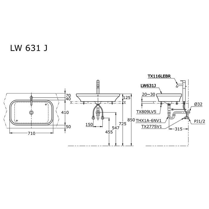 & Free ShippingTOTO Wastafel LW631J Specifications Height: 125 mm Width: 710 mm Depth: 410 mm