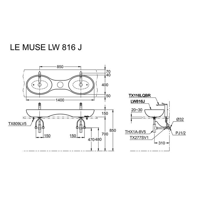 & Free ShippingTOTO Wastafel LW816J Specifications Height: 150 mm Width: 1400 mm Depth: 400 mm