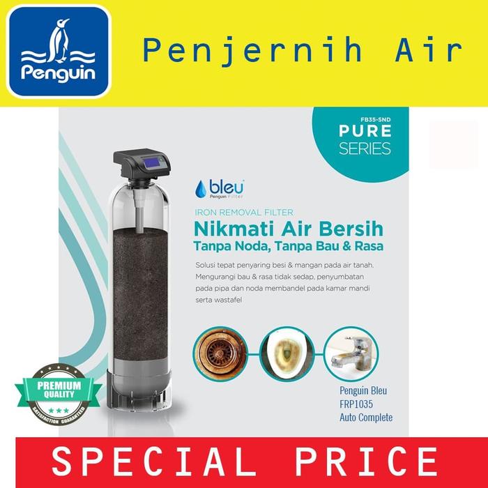 & Free ShippingGratis jasa pemasangan unit.. Hati-hati dengan barang tiruan, harga murah belum tentu medianya berkualitas. Tanyakan kami untuk detail informasi. Produk terbaru dari Penguin, Filter air Bleu dengan ukuran tabung 1035 dan media Manganese berkualitas. Filter ini berfungsi untuk mengurangi Kandungan besi, Mangan dan H2S dari dalam air. Memiliki kepala AUTOMATIC VALVE sehingga anda tidak perlu repot Bilas / Backwash, sangat mempermudah dalam perawatan, cukup set waktu pada valve untuk melakukan backwash, amp; fast rinse sehingga media dapat menyaring kontaminan dengan lebih maksimal.