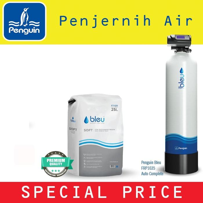 Gratis jasa pemasangan unit.. Hati-hati dengan barang tiruan, harga murah belum tentu medianya berkualitas. Tanyakan kami untuk detail informasi. Produk terbaru dari Penguin, Filter air Bleu dengan ukuran tabung 1035 dan media Manganese berkualitas. Filter ini berfungsi untuk mengurangi Kandungan besi, Mangan dan H2S dari dalam air. Memiliki kepala AUTOMATIC VALVE sehingga anda tidak perlu repot Bilas / Backwash, sangat mempermudah dalam perawatan, cukup set waktu pada valve untuk melakukan backwash, amp; fast rinse sehingga media dapat menyaring kontaminan dengan lebih maksimal. Spesifikasi : Bahan Tabung : FRP ( Fiber Reinforced Plastic) Diameter Tabung : 10 inch (25,4 cm) Tinggi Tabung : 35 Inch (889cm) Tekanan Maksimal : 10 Bar ~150psi Suhu Maksimal Operasional : 49 C Drat Inlet : 3/4 #34; Drat Outlet : 3/4 #34; Yang termasuk dalam paket : – Tabung Filter – Filter Valve – Strainer Atas, Bawah amp; Pipa Distributor – Media Filter – 2pcs Keni Drat dalam 3/4 #34; – 1 Batang (4 Meter) Pipa AW 3/4 #34; – 6pcs Elbow / Keni Rucika – 2 pcs Sok Pipa 3/4 #34; Syarat amp; Ketentuan Gratis Ongkir : – Order via tokopedia tetap dikenakan biaya ongkos kirim seberat 1kg. biaya ini akan digunakan untuk mengirimkan Invoice yang dikirimkan dari Jakarta. – Silahkan hubungi kami untuk mengatur jadwal pemasangan. – Paket ini sudah termasuk pemasangan amp; material. – Material yang termasuk dalam paket ini sudah disebutkan diatas, jika pada saat pemasangan diperlukan material tambahan maka akan ditagihkan saat instalasi – Pemasangan di dak / lokasi diatas lantai 3 akan dikenakan biaya tambahan. Disclaimer : – Untuk mendapatkan hasil terbaik, dianjurkan untuk uji lab terlebih dahulu – Hasil penyaringan / umur media sangat relatif tergantung jumlah pemakaian air, kualitas air baku amp; perawatan. – Garansi 1 tahun diberikan hanya untuk tabung amp; instalasi. HARGA belum termasuk jasa pasang ( pasang unit dan aksesoris stop kran, knee biaya Rp. 750.000 area Jadetabek).